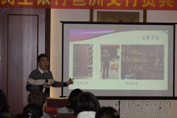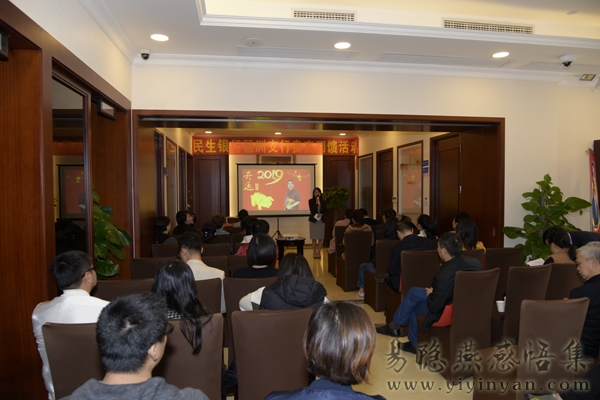 在2019年春节前,受民生银行邀请,举行贵宾回馈活动。银行邀请众多贵宾前来听易隐燕老师讲述十二生肖在2019年的各自运势及太岁化解方法。现场气氛隆重而热烈。易老师祝民生银行在2019年“诸事顺利”“猪年大吉”。
